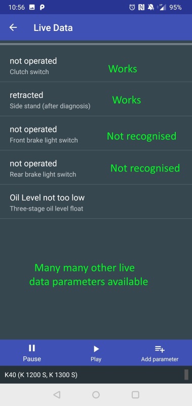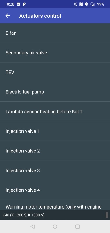 There is a huge choice of parameters you can add to this live screen above. I picked boring stuff, but you can do revs, volts, throttle position(I think I saw that, but didn't get the screen) and so on.