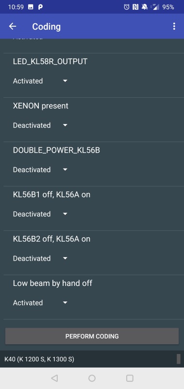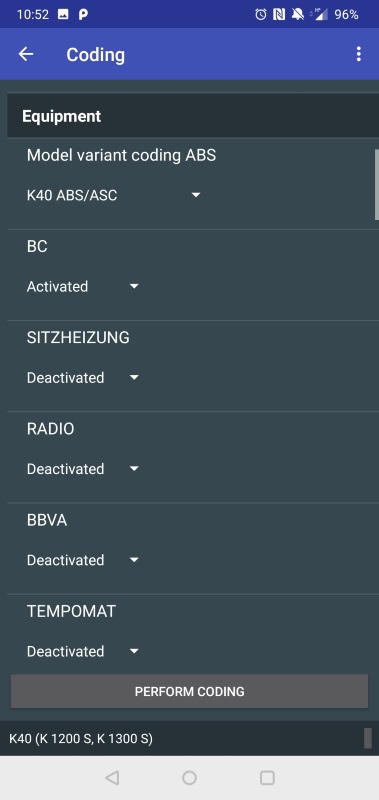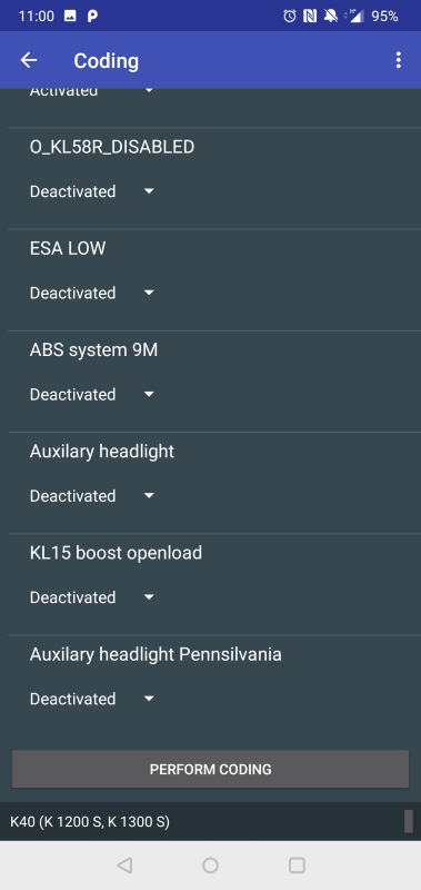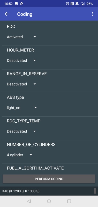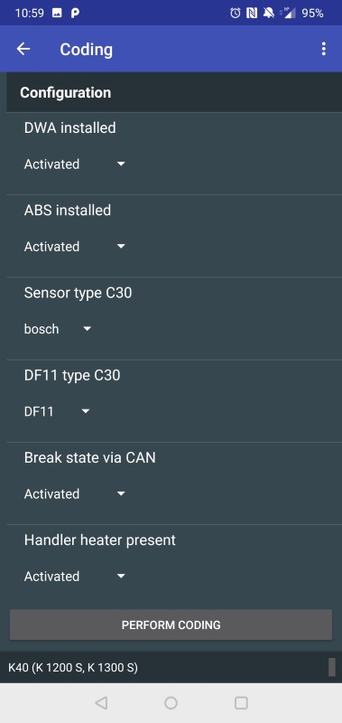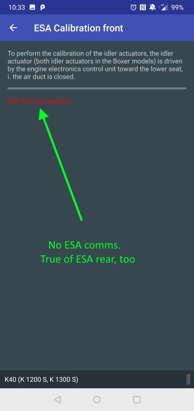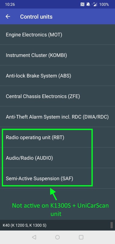 It's not clear whether it's hardware (dongle), software (Motoscan), or if that setting just isn't available on a K1300S.