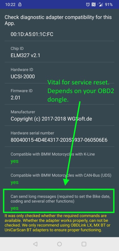 Dongle Check ScreenBefore you purchase, the Motoscan app can check what capabilities your ODB dongle has.