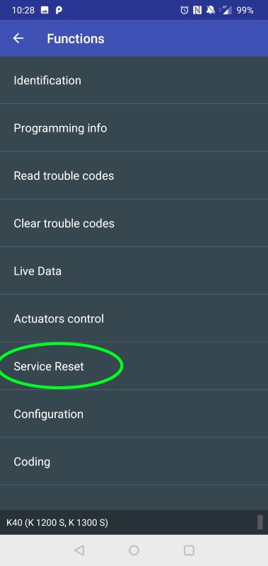 Service ResetInstrument Cluster-> 2nd-level menu , showing 'Service reset'