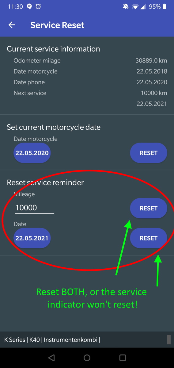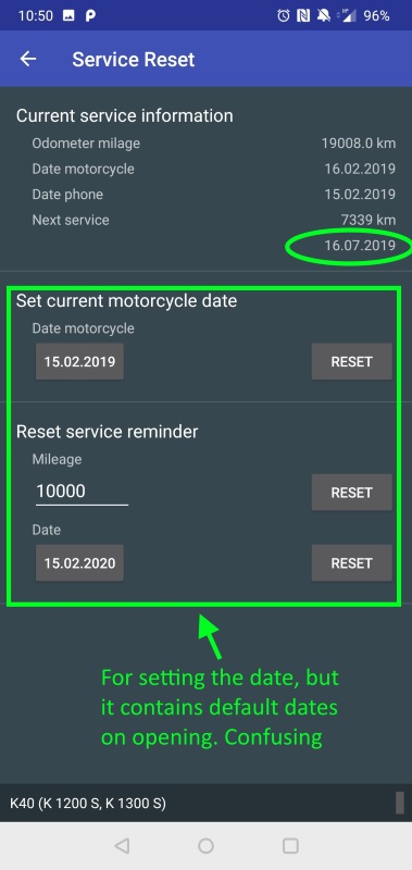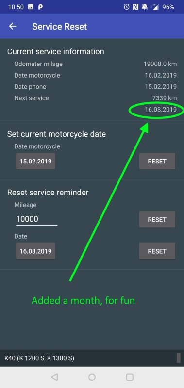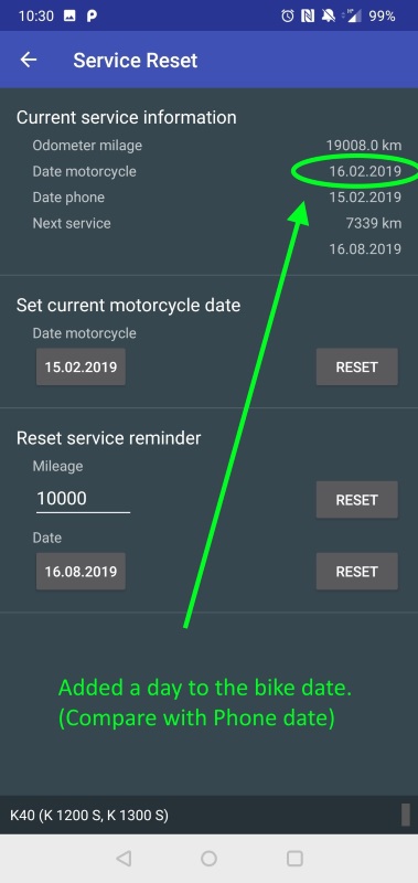 So, off we go into the service reset menu (3rd level of menu, i.e. the bottom), and change the service date: