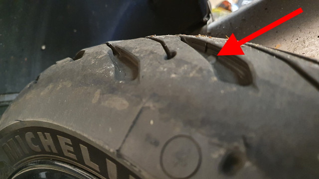 Yes, like that. Also around the centre tread some slight undulations. Little shallow dips. I did get a move on today, there is vibration at the high end. New tyres soon but wondering if there is something else needs attending to.